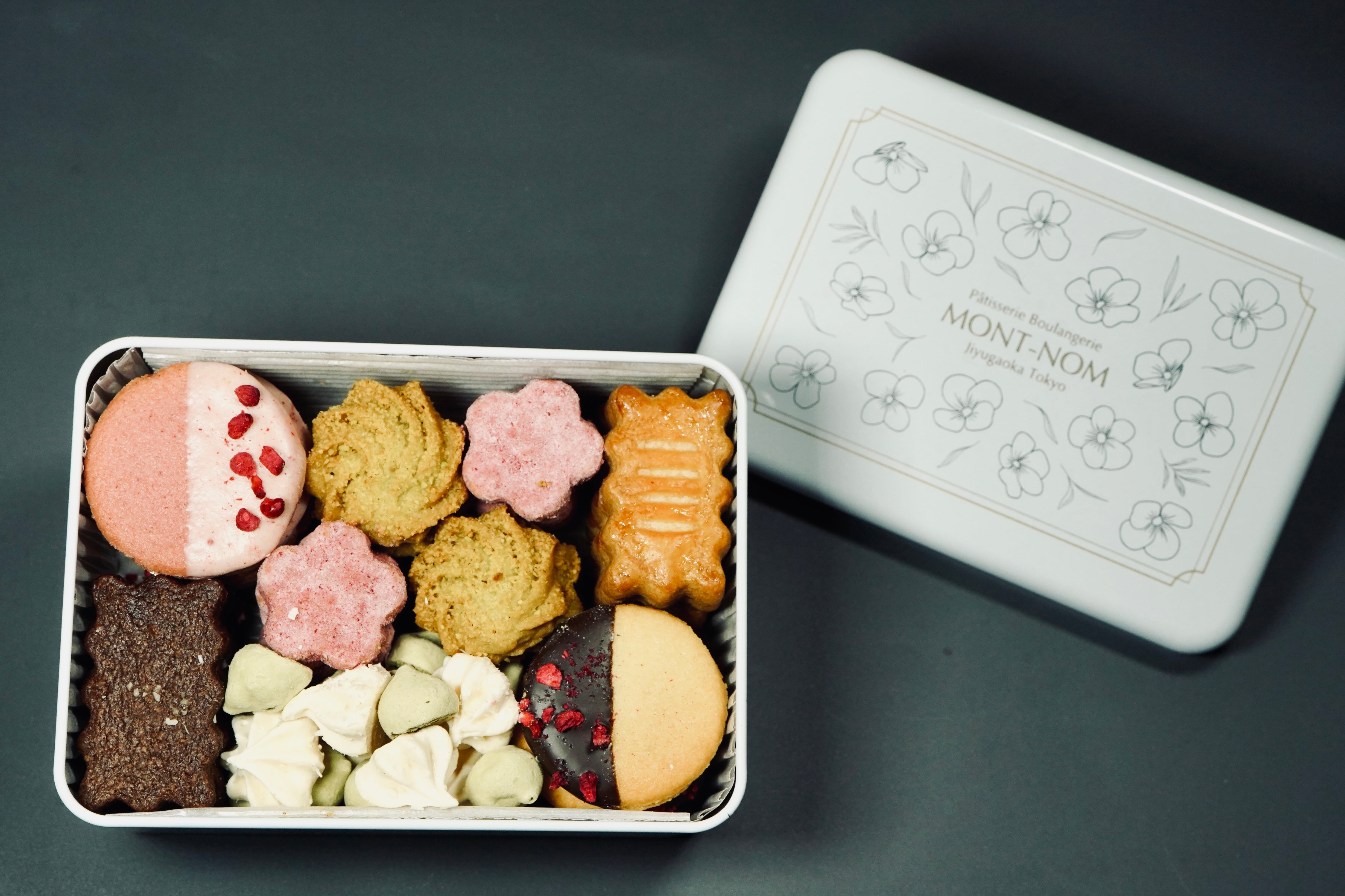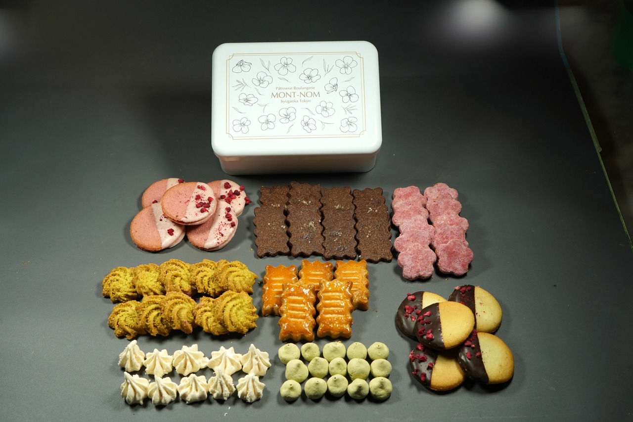 自由が丘のお土産として支持されているモンノンのクッキー缶は、パティシエが一枚一枚心を込めて焼き上げる人気のお品。季節やテーマに沿った詰め合わせをご用意しています。お友達へのプレゼント、自分へのご褒美など様々なシーンに合う可愛いクッキー缶です。